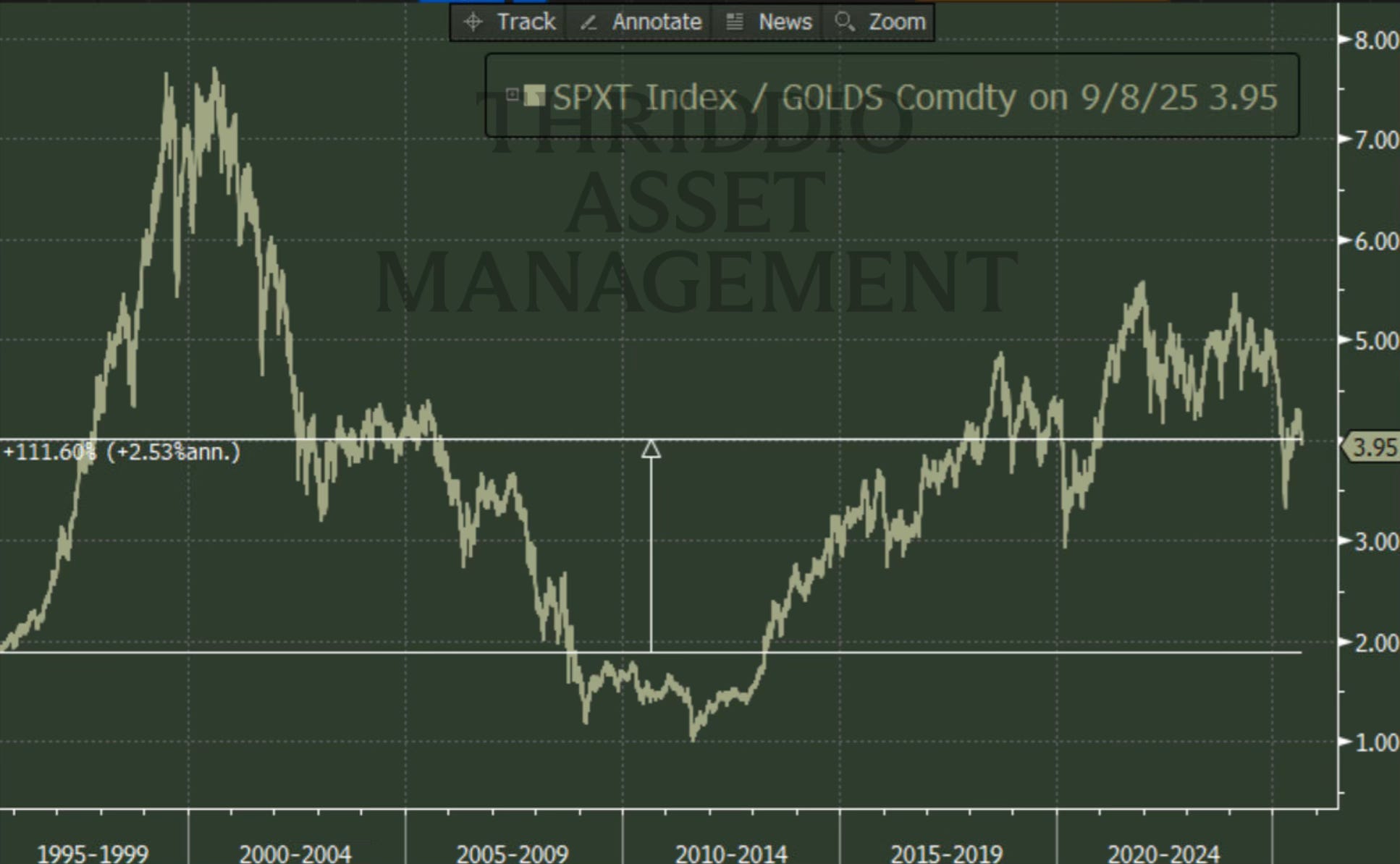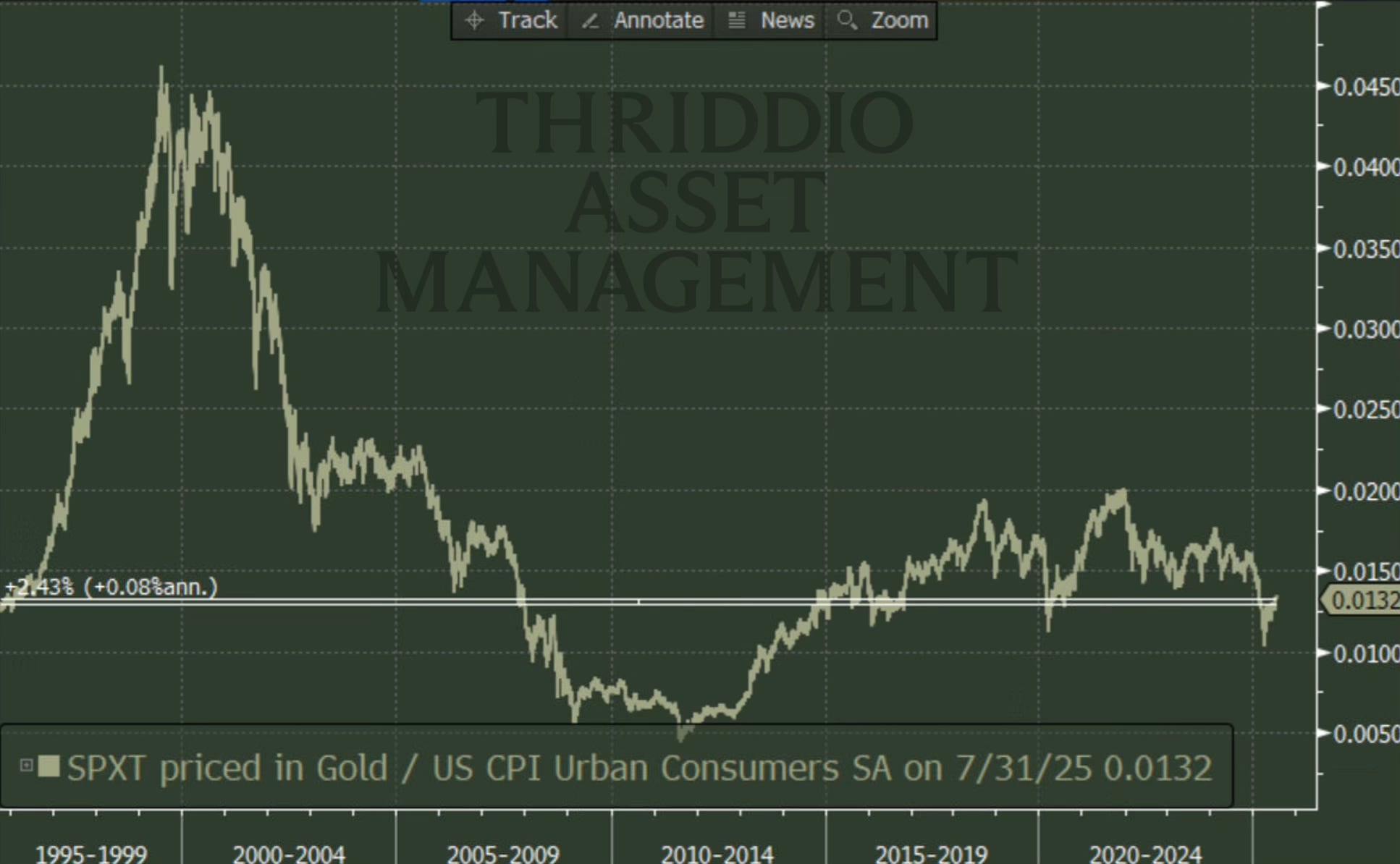 Namely, how can the most industrious and innovative companies in the world’s largest economy, barely outperform the price of gold over the last 100+ years? these companies create goods and services, jobs, trade, etc. Yet their performance vs gold is mediocre, even for the last 30 years the SP500 total return merely outperformed by 2.5% a year.